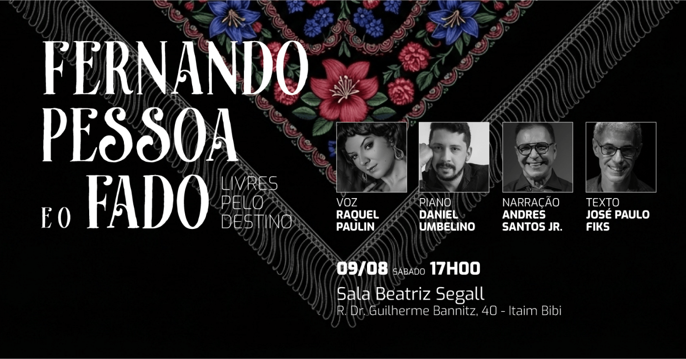 Uma explosão de afetos: É o que promete o encontro entre Fernando Pessoa e as clássicas canções do fado português. O formato deste espetáculo é em forma de sarau: narração,